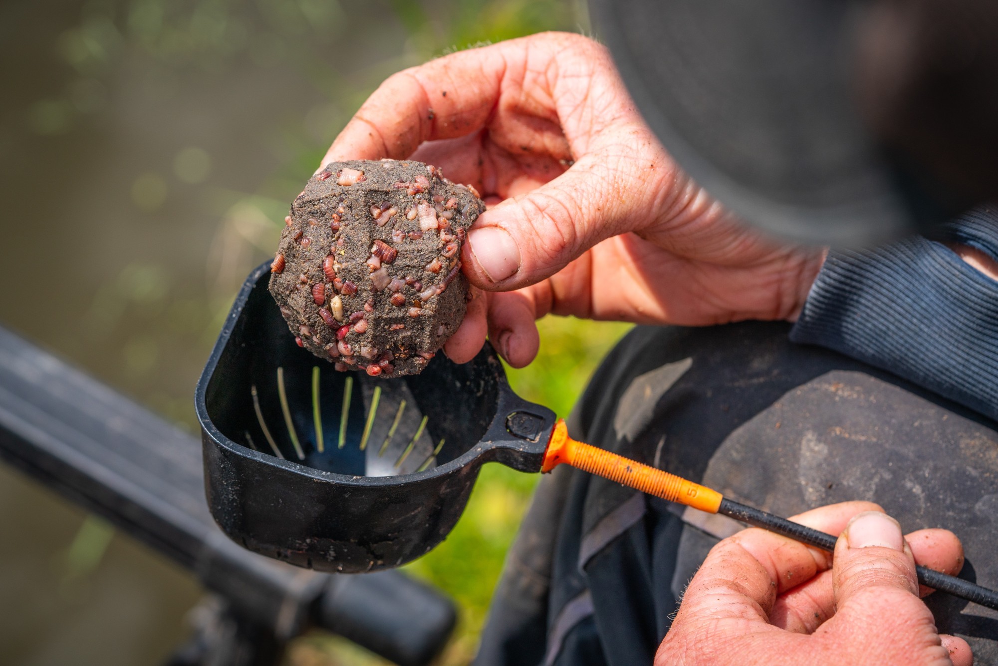 Vented cups to stop bait sticking. Flat front to aid scooping through bait. Pole adaptor consists of super quick release fitting.